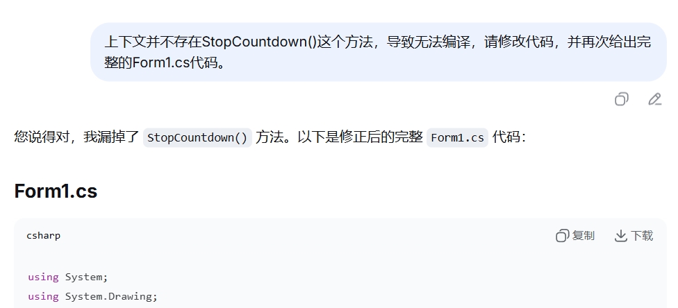 到这里我们应该已经熟悉VS的基本使用了。接下来我们让AI编写代码,再将代码粘贴进VS对应的位置,即可编译生成程序。